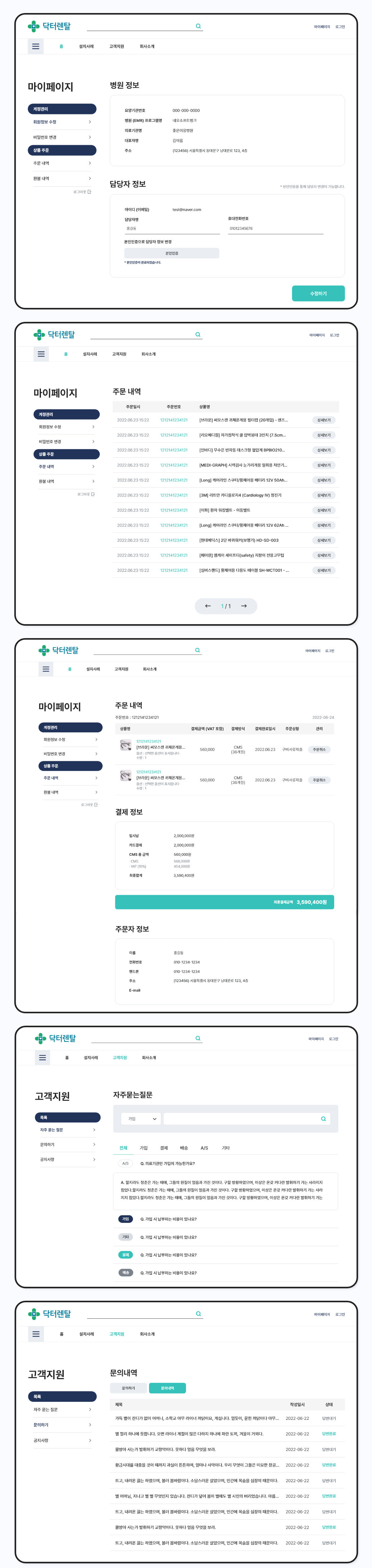 - 회원구분은 관리자(최고), 딜러, 일반회원(병원)으로 나뉩니다