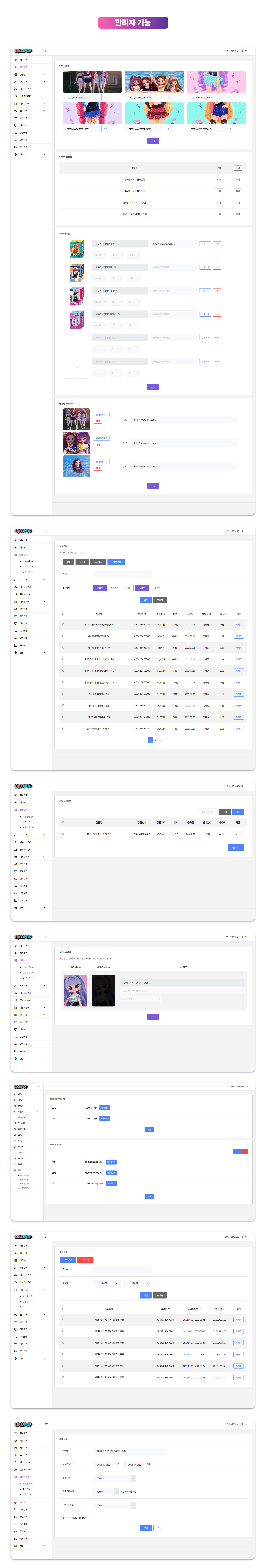 특징 : 상품 결제 및 중고거래, 랜덤뽑기 기능이 있는 캐릭터 상품 쇼핑몰