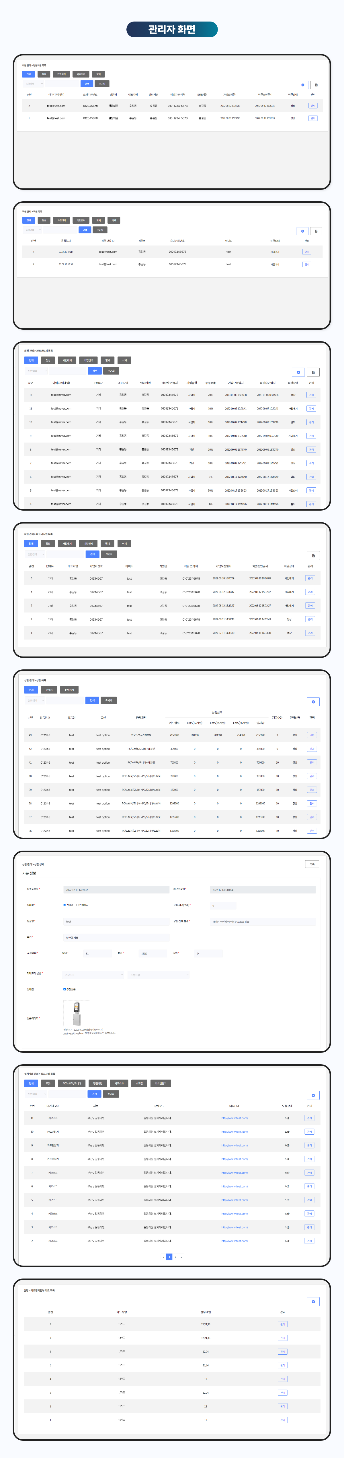 - 설치사례관리: 상품들의 설치사례들을 관리합니다.