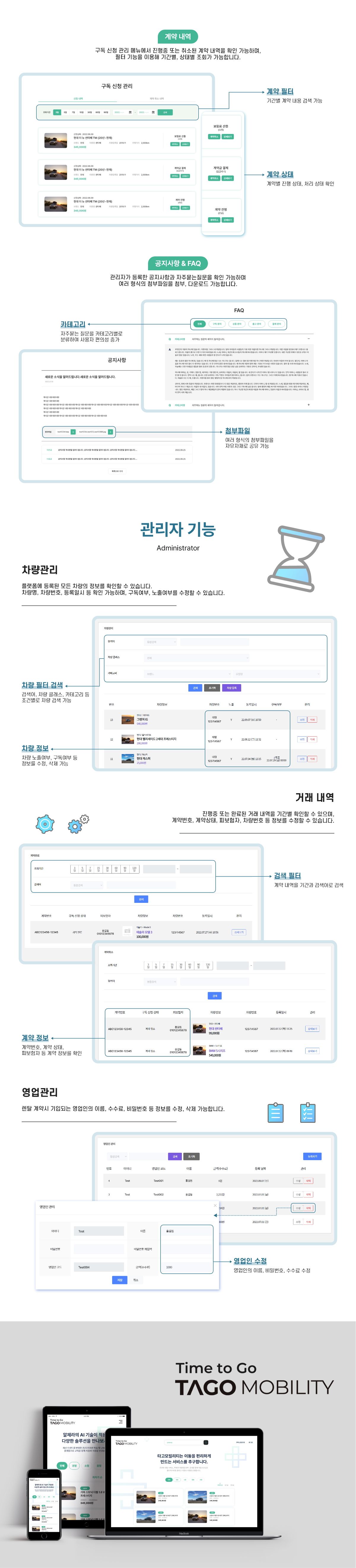 - 구독신청관리를 통해 고객이 선택한 렌탈 차량의 단계승인 및 계약내용 확인, 수정기능등이 가능합니다.