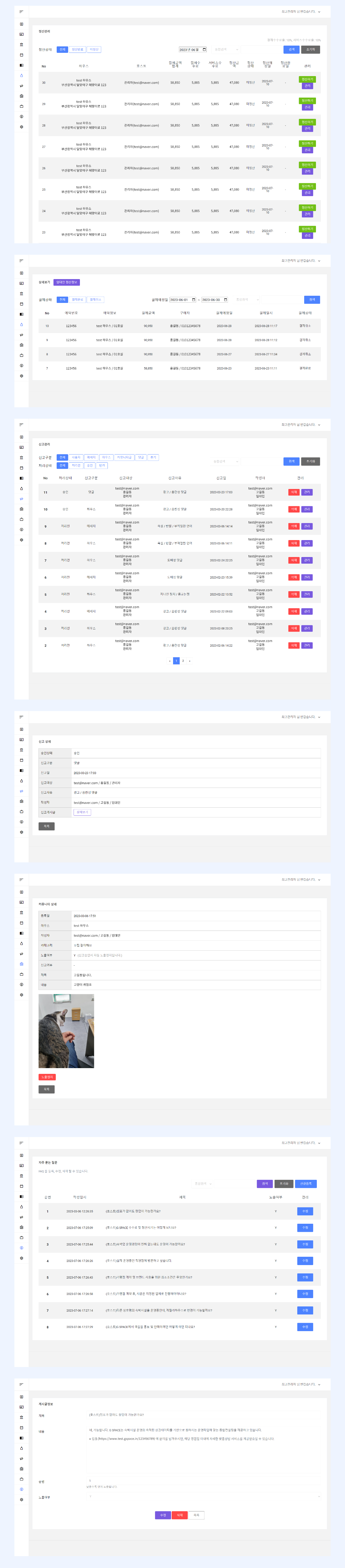 - 신고관리에서 게스트들이 사용자, 메세지, 하우스, 커뮤니티글, 댓글, 후기 를 대상으로 한 신고내용을 확인할 수 있다.