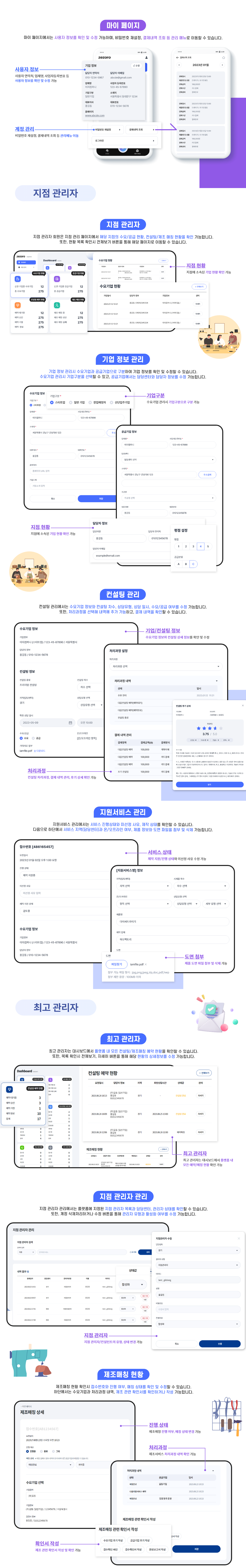 - 업무 진행상황을 관리하는 관리자 프로그램. 사용자앱 보다 관리자 업무에 사용하는기능이 더 많습니다.