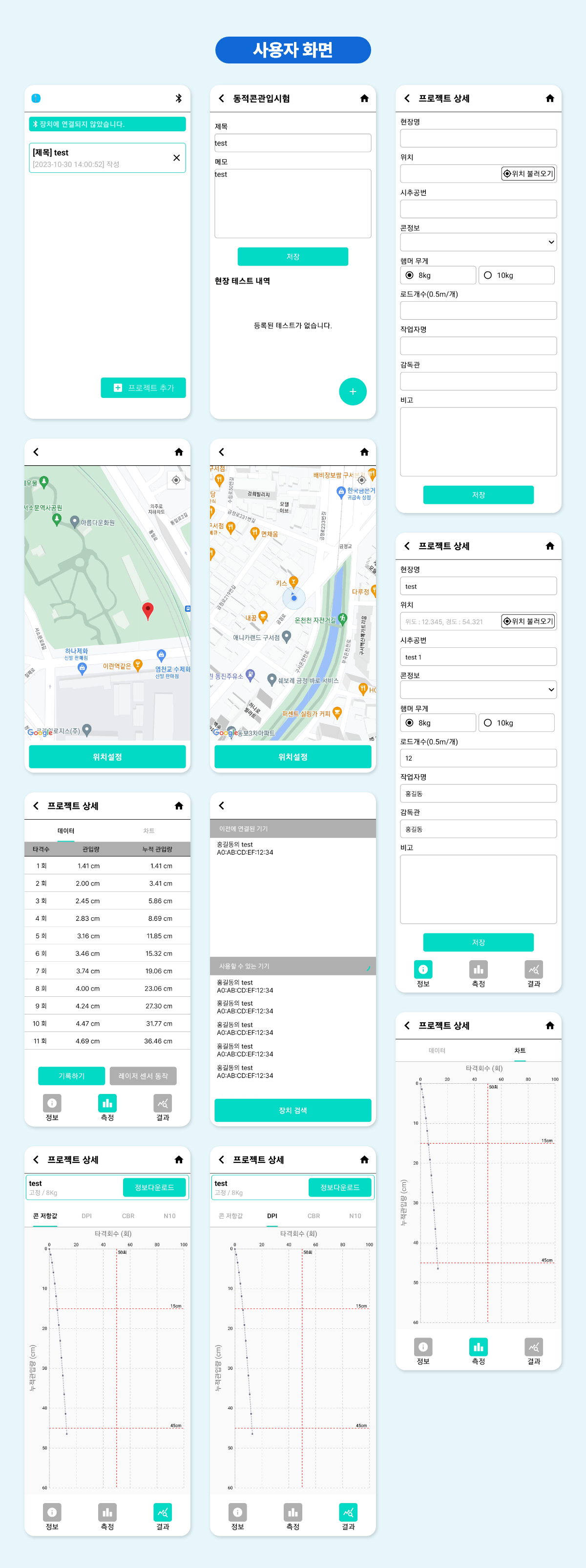 AR/VR/IOT/QR | 관입관측 장비와 블루투스 연동을 통해 데이터 수집이 가능한 앱(블루투스 연결, 데이터 수집, 데이터 차트 확인, 구글 지도)(표준관입시험과 유사)