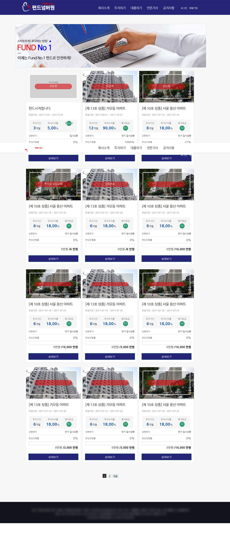 부동산/금융/대출 | 크라우드 펀딩 페이지 정보 작성자 최고관리자 작성일23-08-07 11:32 조회4,555회 댓글0건 관련링크 사이트 바로가기 : http://dmonster586.cafe24.com/ 이전글 다음글 목록 본문 이전글 다음글 목록